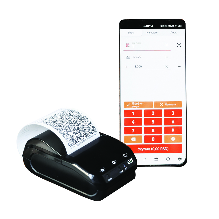 Da biste odštampali račun, baterija mora da Vam bude na minimum 25%. Pretpostavimo da jeste, dugme Štampaj je programirano da mora da se zadrži malo duže kako ne bi došlo do slučajnog štampanja. Ukoliko to ne rešava problem, proverite da li imate papira u štampaču. Ako ga imate, onda je sledeća opcija da proverite da li su inicijalizovani bezbednosni element (vidi pitanje broj 13!) I uključene poreske grupe koje su Vam podešene u artiklima (Podešavanja, Artikli, poreske grupe).